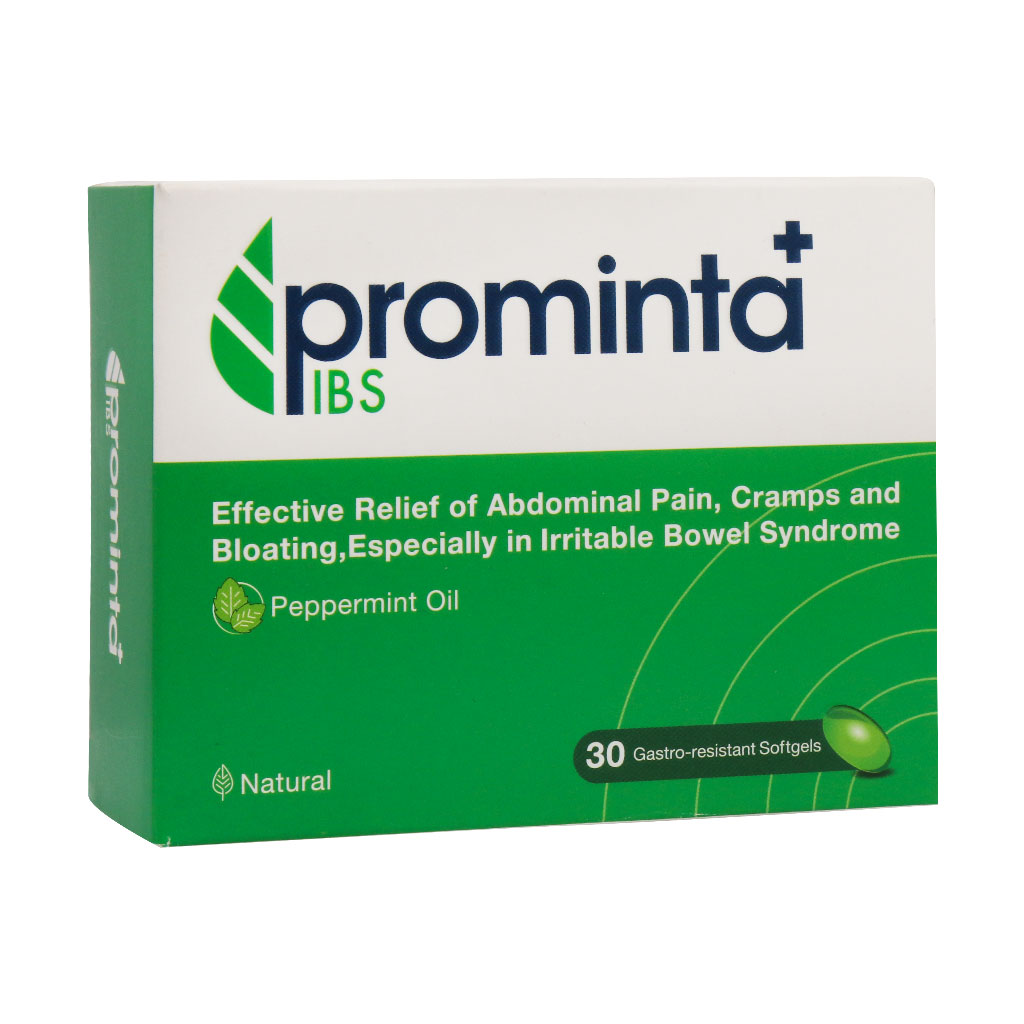 کپسول پرومینتا پلاس آی بی اس با داشتن ۱۸۷ میلی گرم سبب بهبود علائم درد شکمی، اسپاسم دستگاه گوارش و نفخ به ویژه در بیماران مبتلا به سندروم روده تحریک پذیر (IBS) میشود. عصاره نعناع فلفلی با مهار کانالهای کلسیمی عضلات صاف روده و کاهش انقباضات این عضلات، سبب کاهش دل درد و دل پیچه میشود. همچنین این عصاره با تنظیم تعادل میکروبیوم دستگاه گوارش، باعث کاهش نفخ میشود. لازم به ذکر است فرم این قرص ضد نفخ مقاوم به اسید معده بوده و آزادسازی هدفمند مواد موثره در روده، کاهش تحریک معده و بلع و هضم ساده را به دنبال دارد.