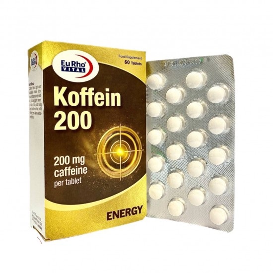 کافئین و تاثیرات آن از منابع قهوه، چای سیاه و سبز شناخته شده می باشد. هر عدد قرص کافئین 200 یوروویتال تامین کننده 200 میلی گرم تامین کننده 200 میلی گرم کافئین می باشد که این میزان معادل دو فنجان قهوه است.